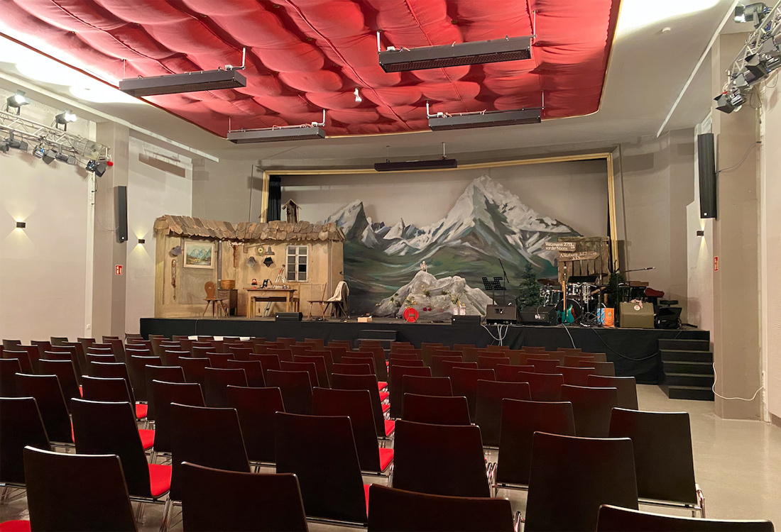 Der „KLEINE SAAL“ verfügt über 85 Sitzplätze und einer erhöhten Kleinkunstbühne.