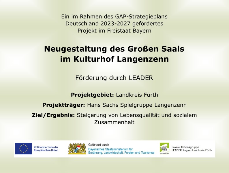 Die LAG „LEADER Region Landkreis Fürth“ unterstützt das Projekt, das durch das Bayerisches Staatsministerium für Ernährung, Landwirtschaft und Forsten und den Europäischen Landwirtschaftsfonds für Entwicklung des ländlichen Raums (ELER) gefördert wird.